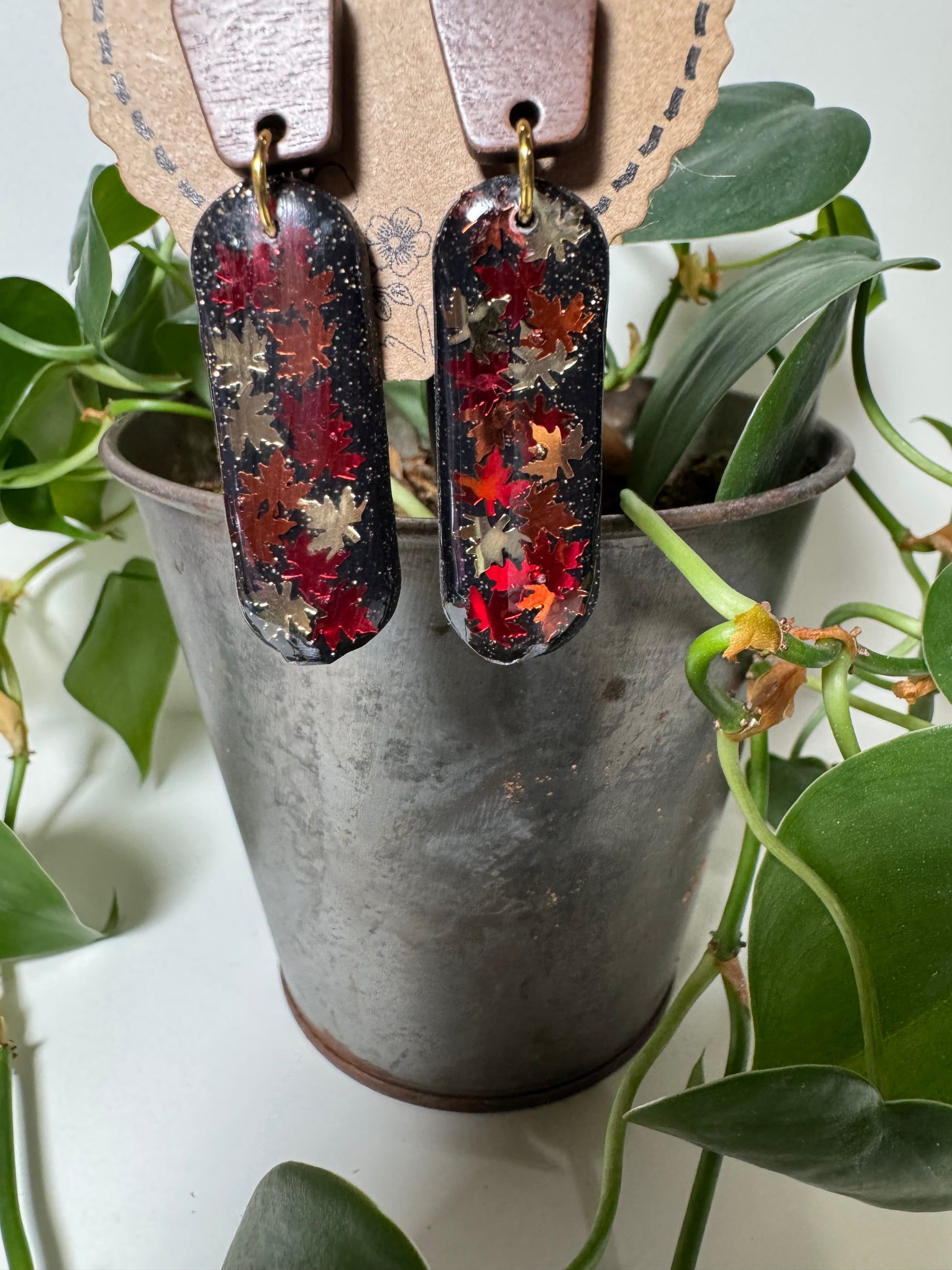 Capture the essence of fall with these unique autumn leaf earrings. Each piece featuresl autumn leaves glittering beneath a protective resin, set on a natural wood post for a warm, earthy touch. Perfect for adding seasonal charm to any outfit, these earrings celebrate nature’s beauty. Please note, they are not hypoallergenic. Embrace the spirit of autumn with wearable art that stands out.