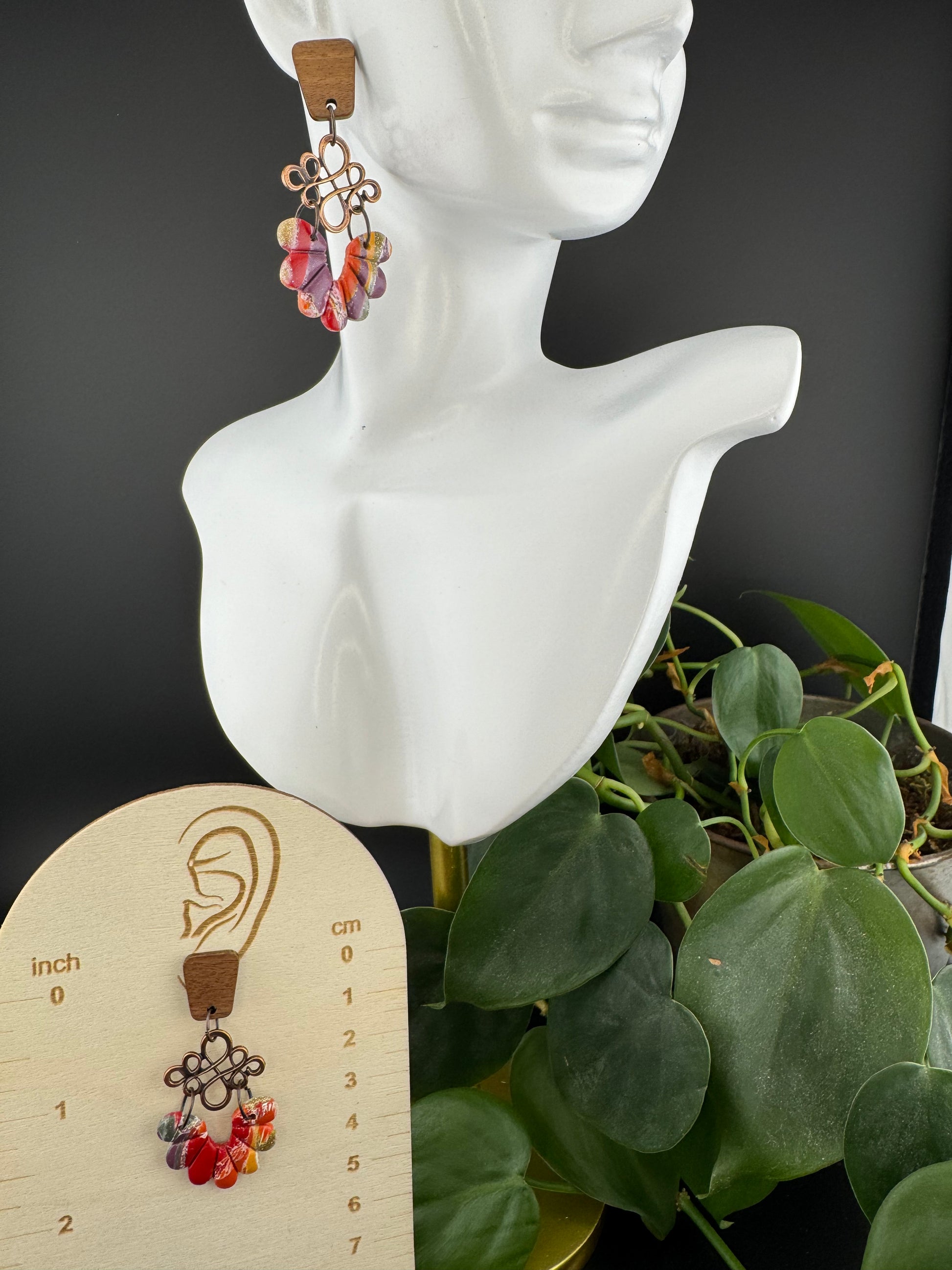 Make a statement with these vibrant, bold earrings featuring classic colors that effortlessly complement any outfit. The warm copper charm combined with natural wood posts adds a unique blend of elegance and rustic charm, ensuring versatility for everyday wear or special occasions. Elevate your style with a piece designed to harmonize with anything in your wardrobe.