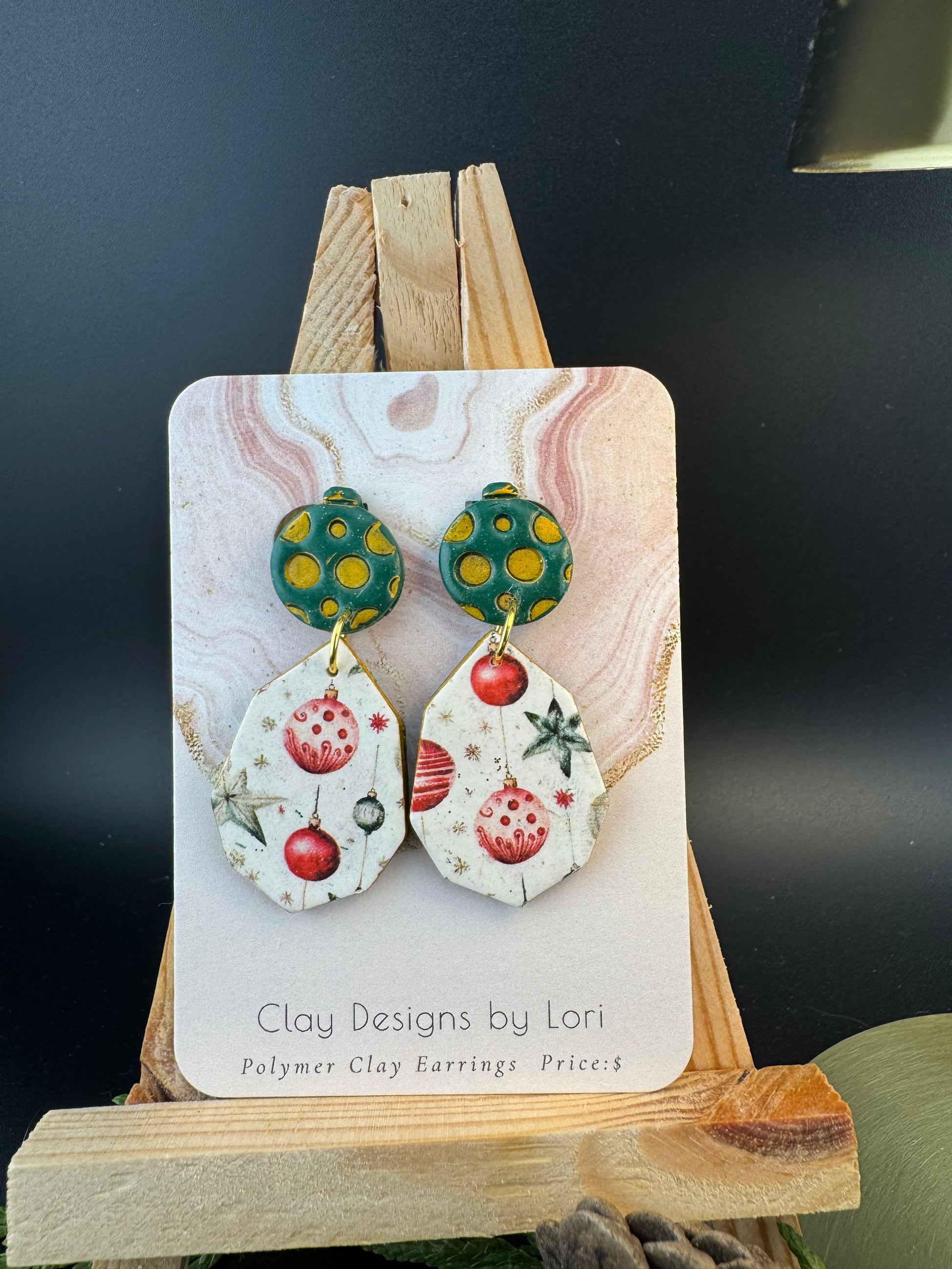 Green and Gold Polka Dot Ornament with Red and Green Ornament Transfer Earrings
