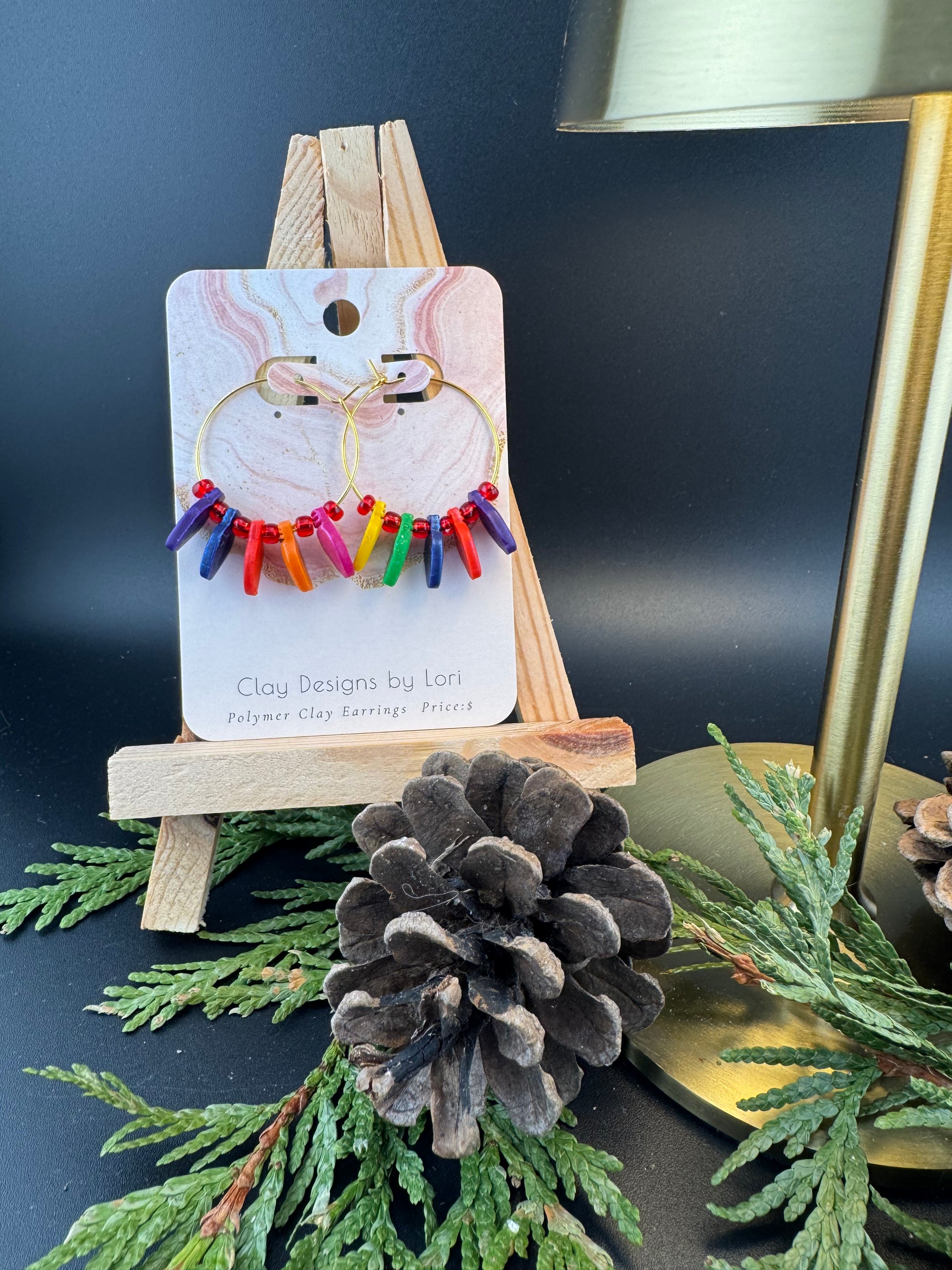 These stunning hoop earrings combine the elegance of precious metal with eye-catching artistry. Each pair features delicate multi-colored lights separated by vibrant red glass seed beads, creating a dynamic interplay of color and shimmer. Available in your choice of warm gold or cool silver, these hypoallergenic earrings are perfect for sensitive ears while delivering maximum visual impact. Whether you're dressing up for a special occasion or adding flair to everyday wear, these versatile hoops offer the perfect balance of sophistication and playful charm. Lightweight and comfortable for all-day wear.