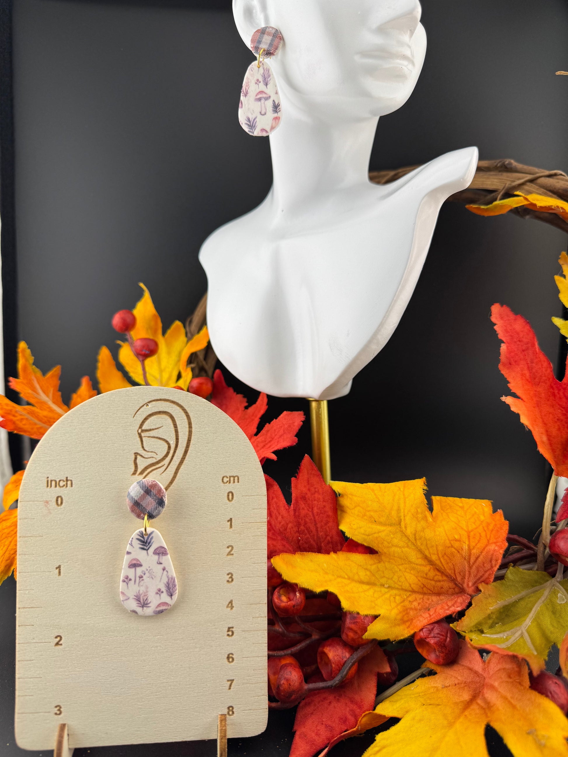 Celebrate the charm of autumn with these delightful earrings featuring a mushroom motif paired with rust and blue plaid posts. Crafted with hypoallergenic materials, they offer a comfortable wear for sensitive skin while adding a cozy, seasonal touch to any outfit. Perfect for embracing fall’s warmth and style with a unique, nature-inspired design.