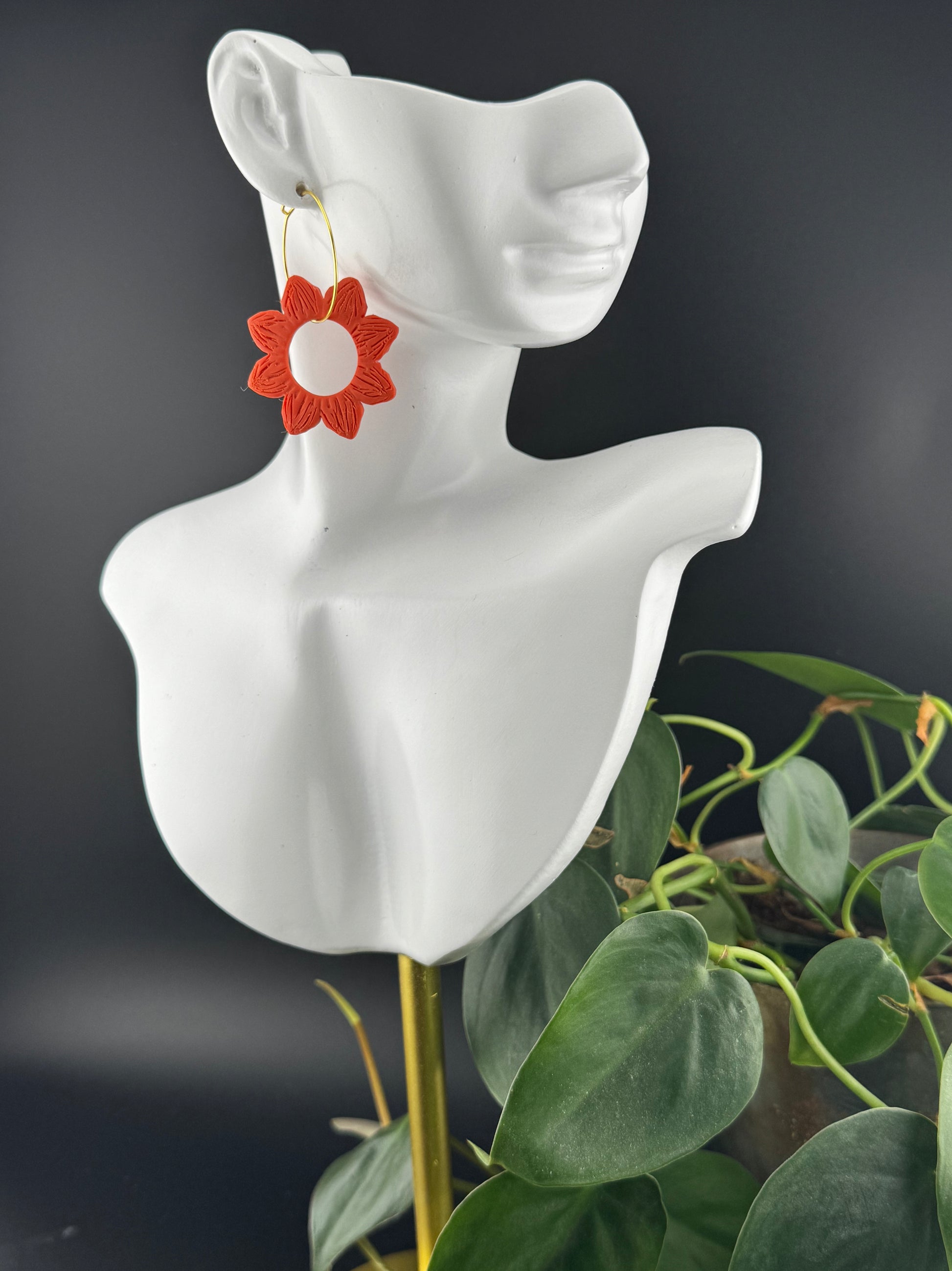 These Sunflower Hoop Earrings combine timeless charm with hand-crafted quality. Comes in 4 colors: Wine, Green, Terracotta, and Orange.