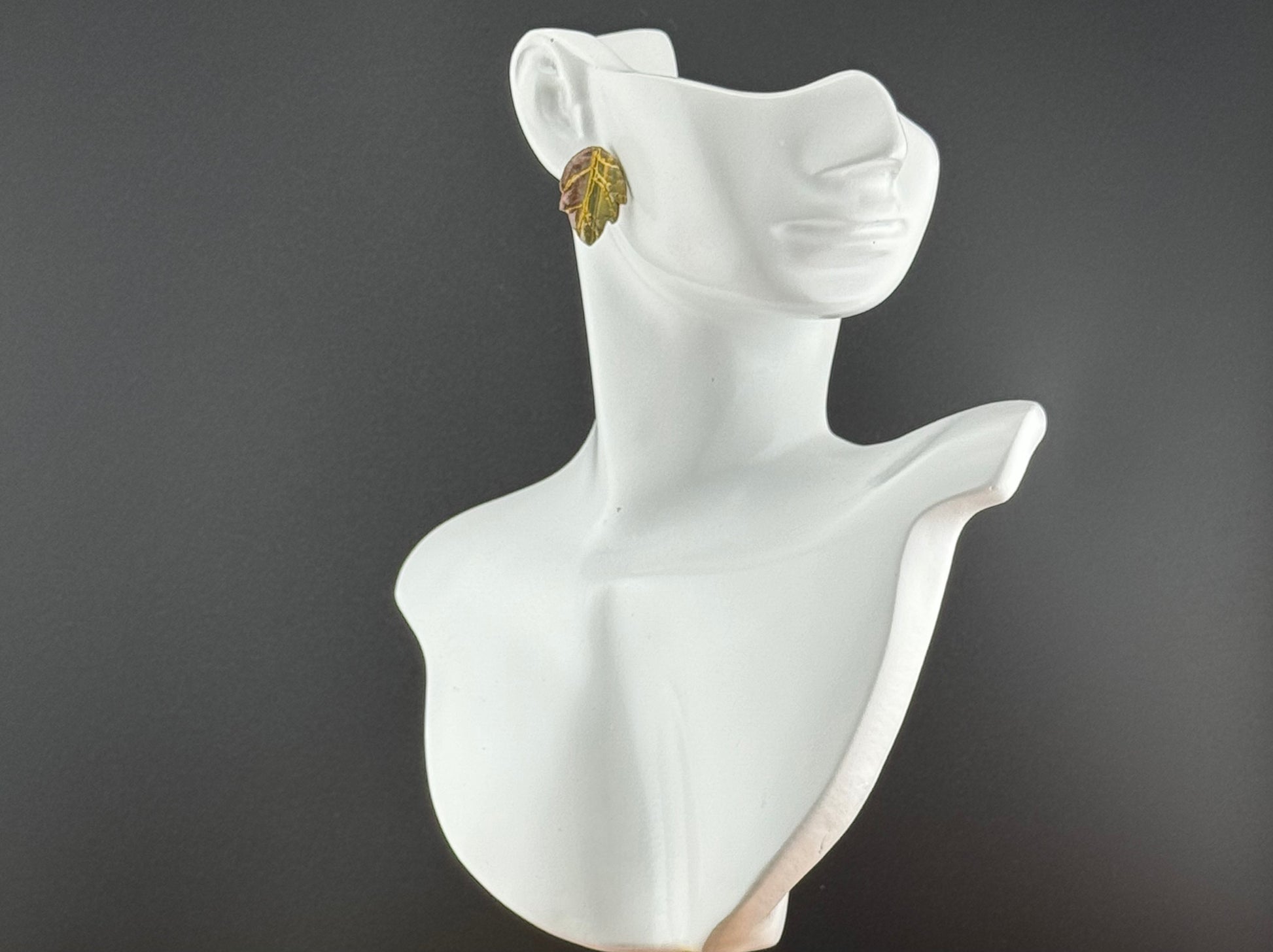 Elevate your accessory collection with the Turning Leaves Marbled Leaf Studs. Expertly crafted, these studs feature a unique marbled design that mimics the natural veining of leaves, combining organic beauty with modern style. Lightweight and comfortable, they are perfect for daily wear or special occasions, adding a subtle yet sophisticated touch to any outfit.